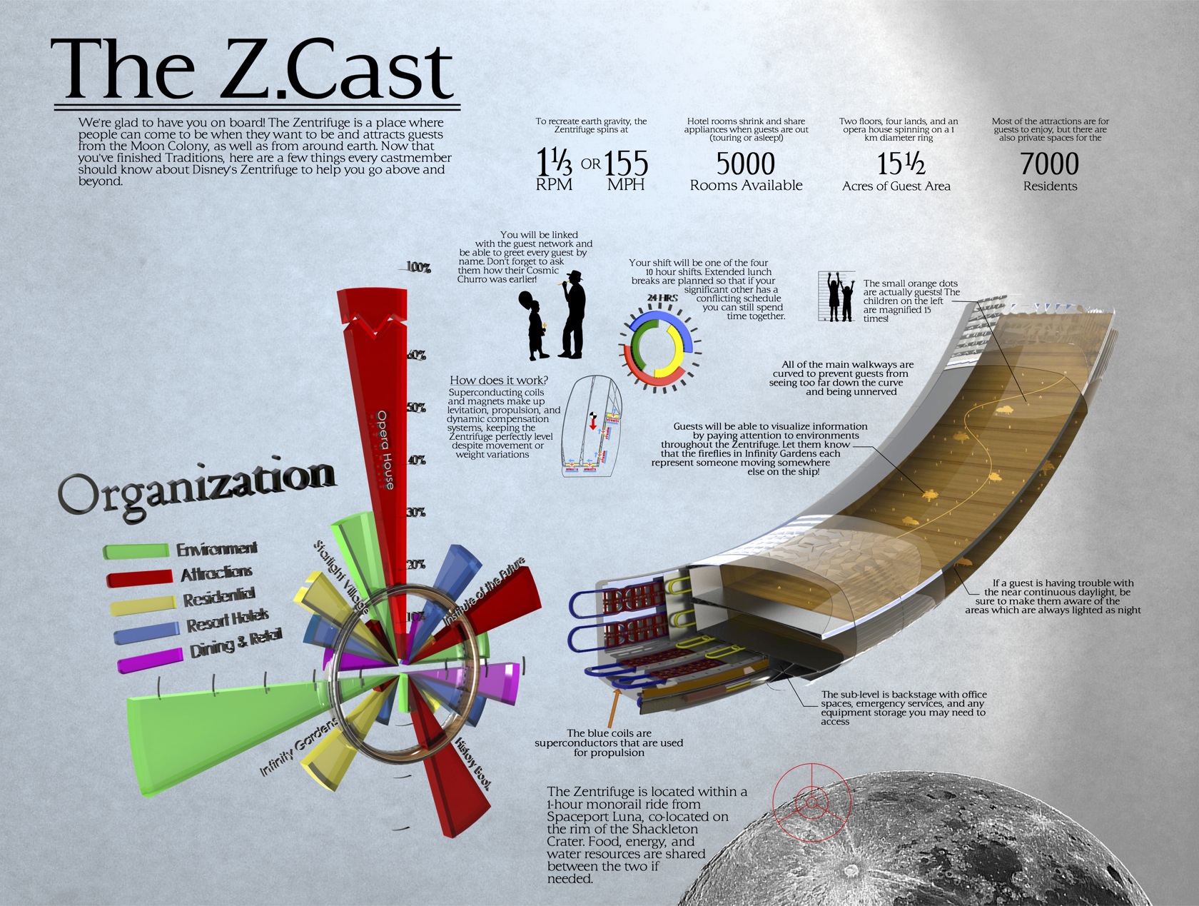 An infographic for Disney’s 2011 Imaginations contest about an amusement park on the moon.